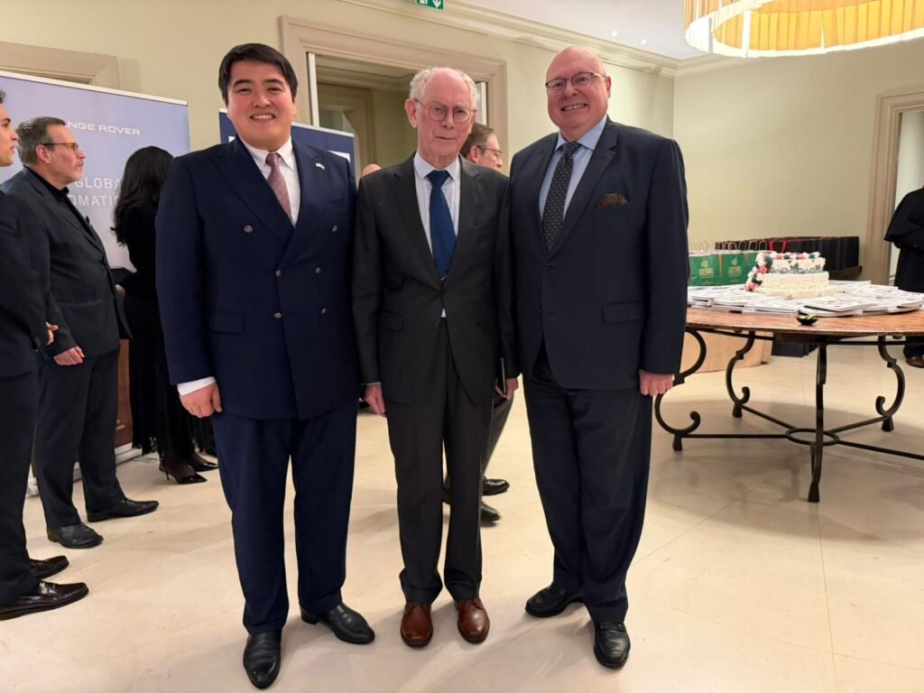 The reception was also attended by Herman Van Rompuy, former Prime Minister of Belgium and the first permanent President of the European Council (2009–2014). His participation underscored the high-level nature of the event and its relevance for European and international diplomatic engagement.
